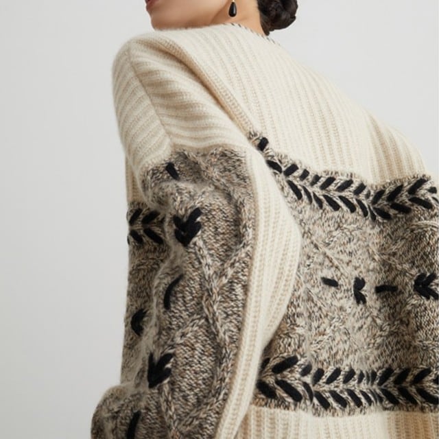 バイカラー切り替えデザインリブ編みクルーネックニット 1color sm0027