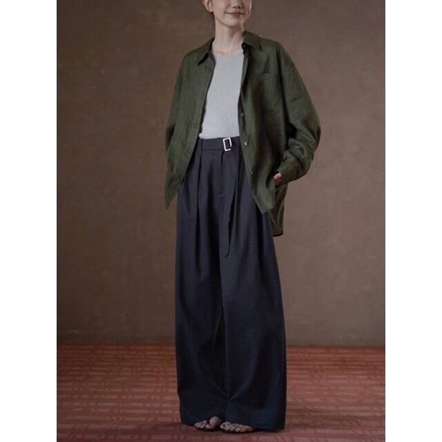 ハイウエストデザインとワイドシルエットが、体型カバーとスタイルアップを両立するワイドパンツです。ウエストマークできるベルト付きで、メリハリのあるシルエットを演出できます。シンプルなデザインなので、トップスを選ばず、様々なコーディネートをお楽しみいただけます。カジュアルなTシャツから、ブラウスなどのきれいめトップスまで、幅広い着こなしにマッチします。デイリーユースからちょっとしたお出かけまで、活躍の場がきっと広がる一本です。
