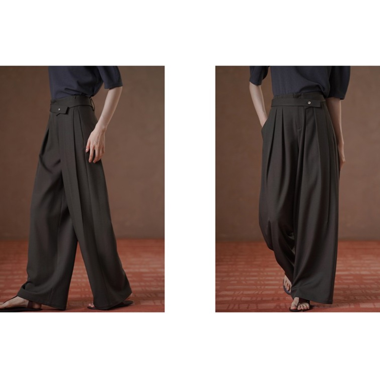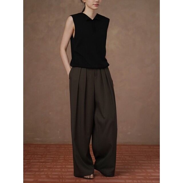 ベルト付きワイドタックパンツ 1color sm0081