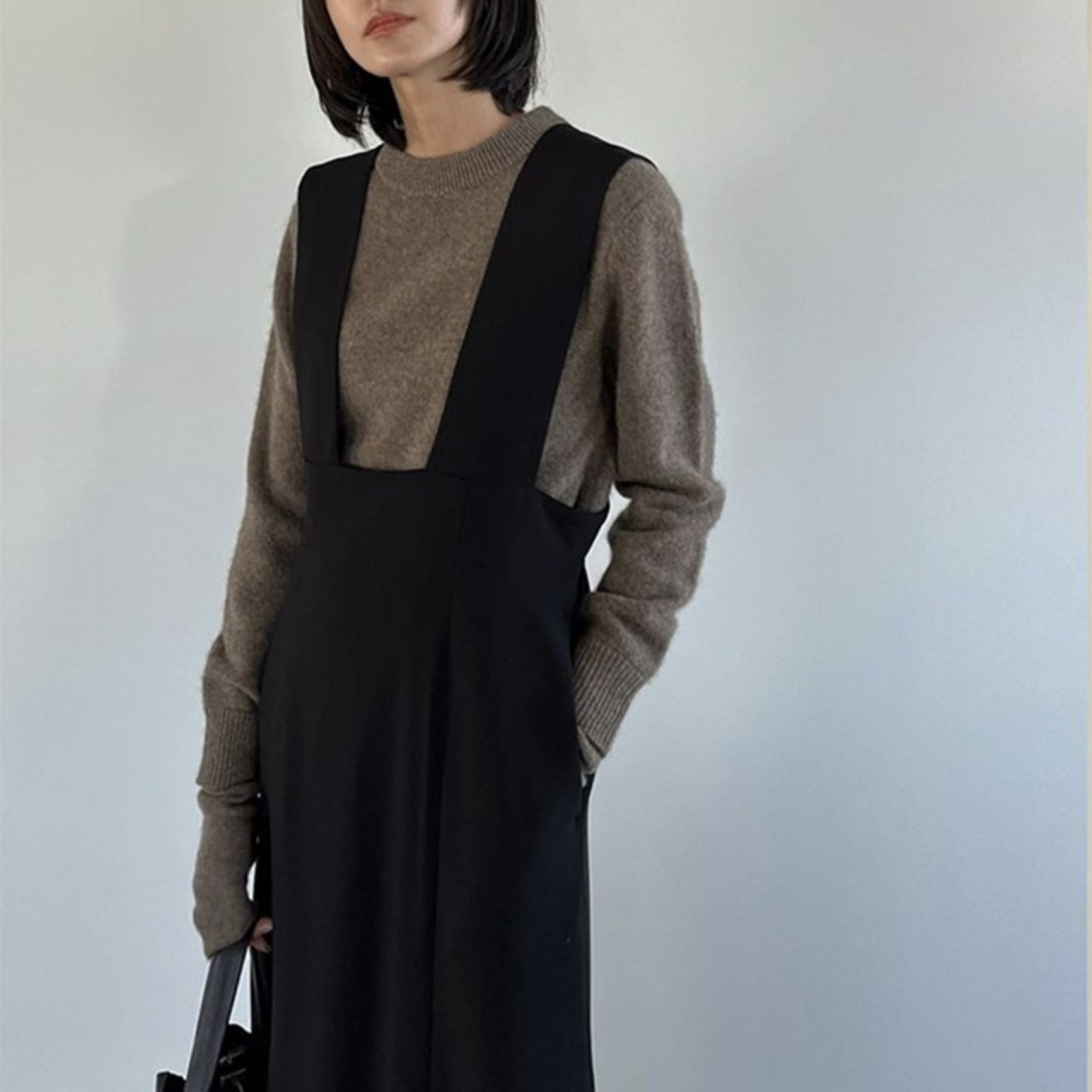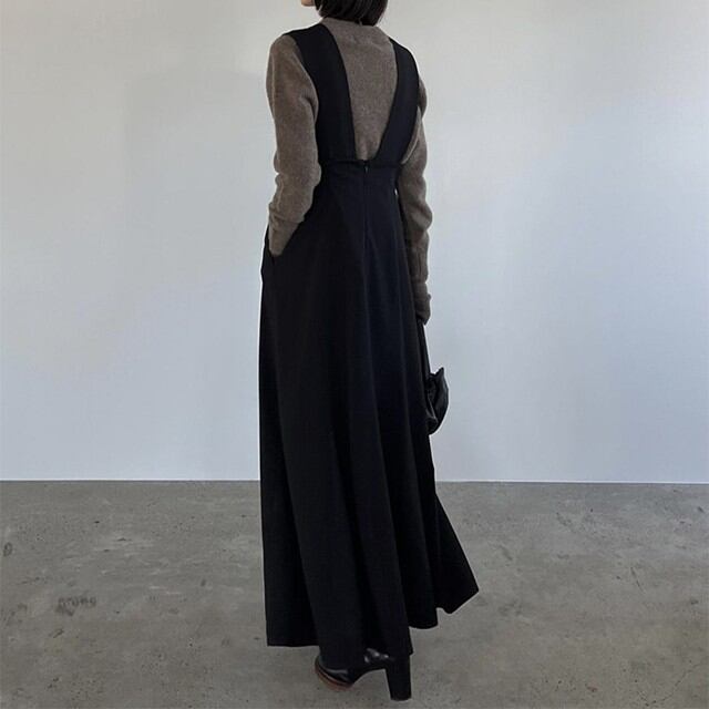シンプルなデザインながらも、ワイドサスペンダーがアクセントになり、洗練された印象を与えます。