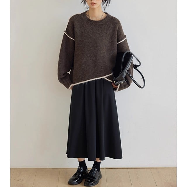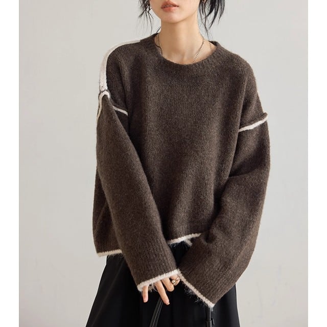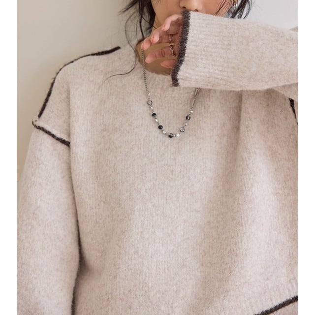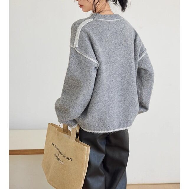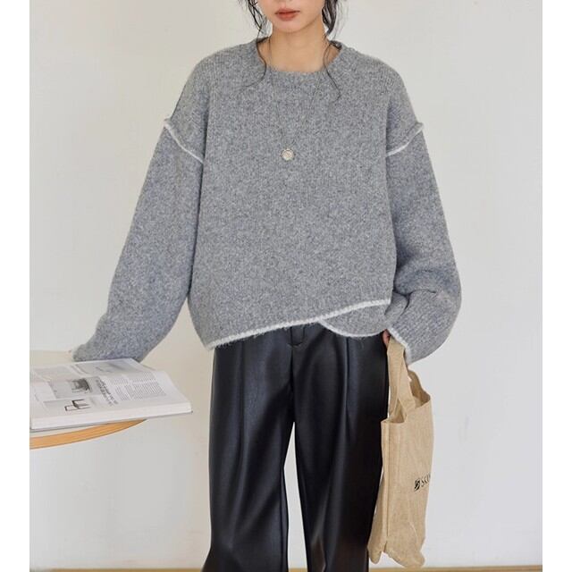 長袖ライン入りオーバーサイズ ニット 3color sm0048