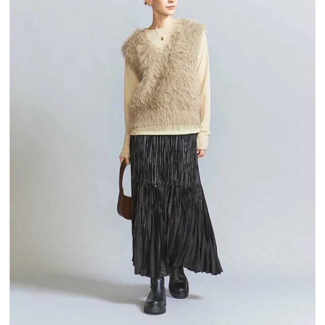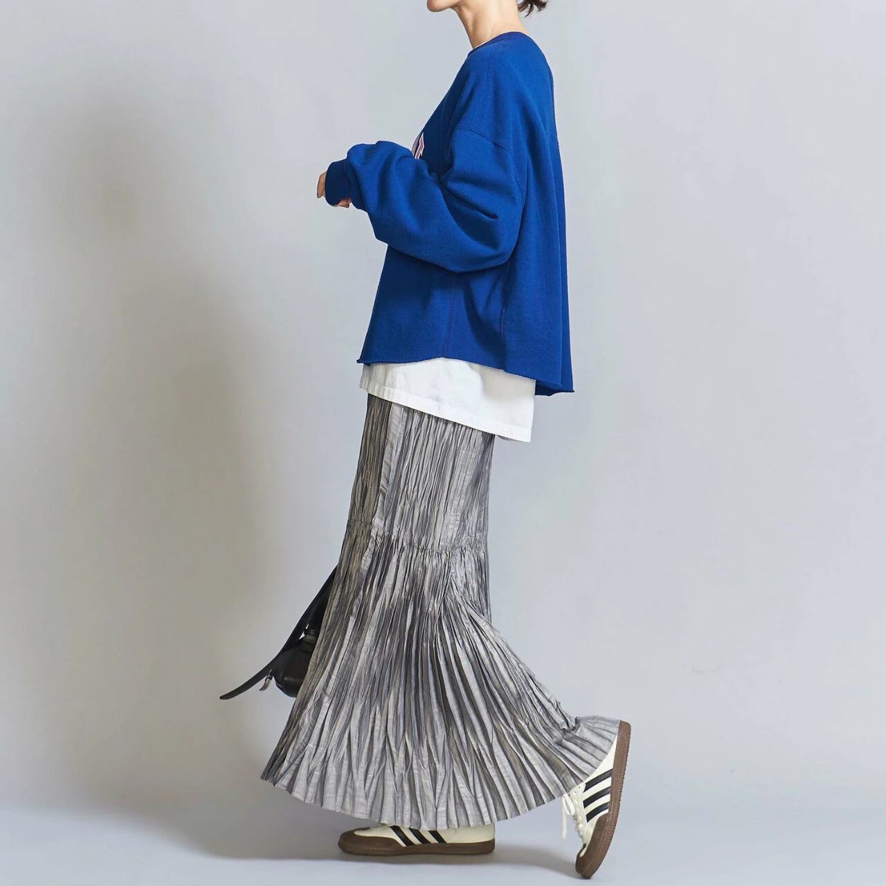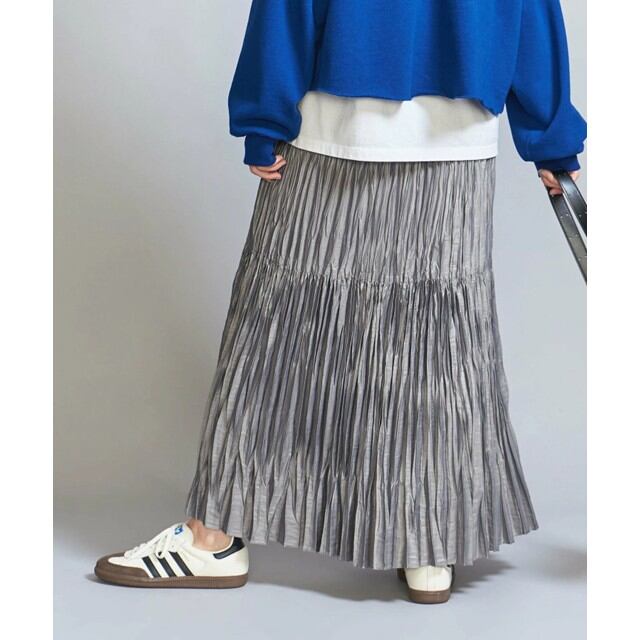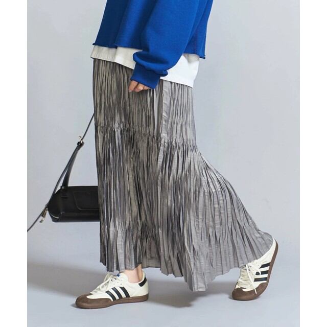 繊細なプリーツが歩くたびに優雅なドレープを生み出し、女性らしさを引き立てます。